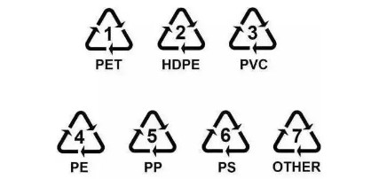 1 號(hào)和 6 號(hào):耐熱性相對(duì)較差,不能加熱,不能裝高溫食物。礦泉水、果汁、碳酸飲料的塑料瓶就是用1號(hào)材質(zhì)做的;現(xiàn)在很多奶茶的杯蓋用的是6號(hào);